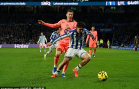 在西甲第24轮的比赛中,巴萨在客场以1-...